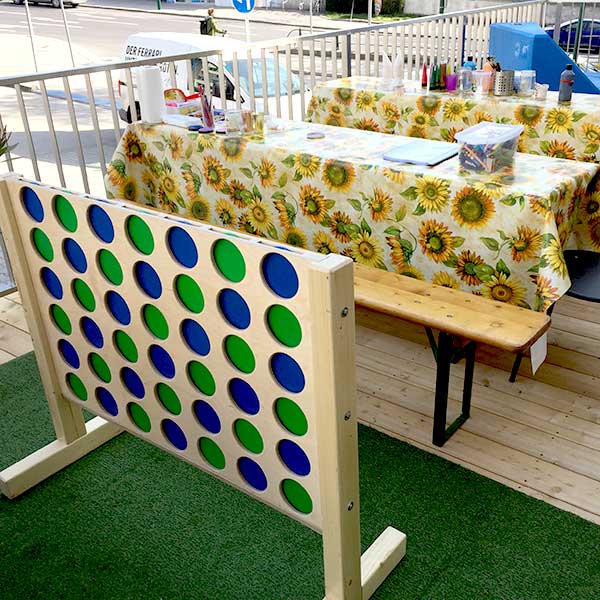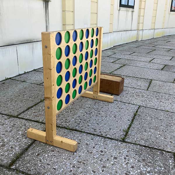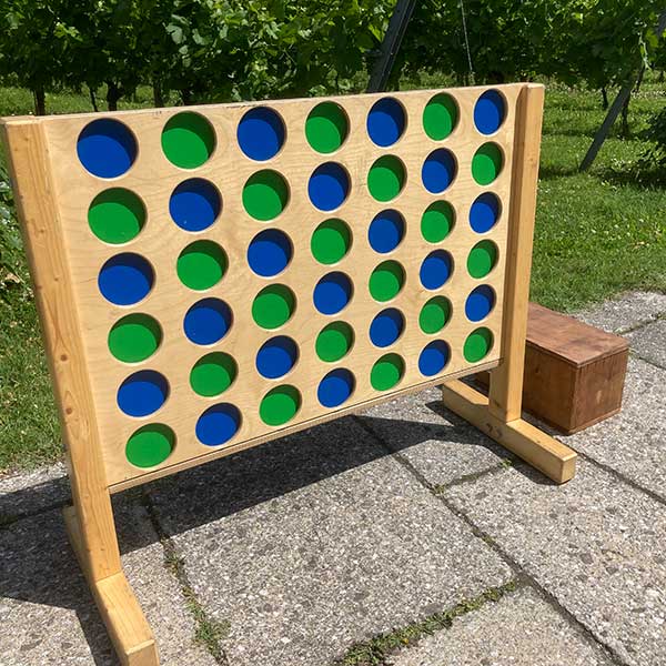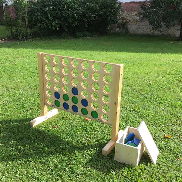 - Beschreibung: Riesen Vier Gewinnt oder Riesen 4 Gewinnt Spiel aus Holz. Zwei Spieler spielen gegeneinander. Gewonnen hat zuerst derjenige der 4 Gleiche Scheiben in einer Reihe, Spalte oder diagonal schafft.